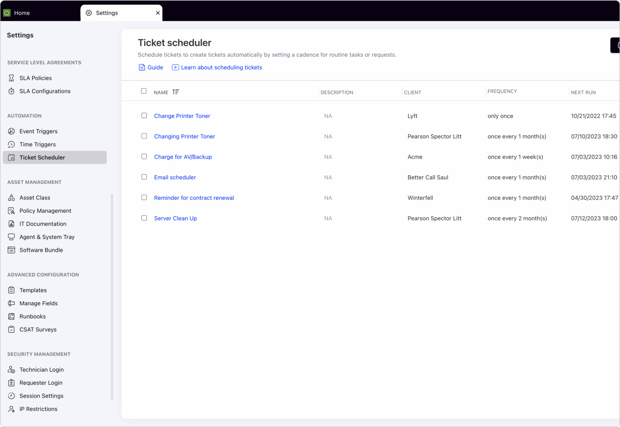 Gagnez du temps en planifiant des tickets récurrents pour les tâches qui doivent être effectuées à intervalles réguliers.