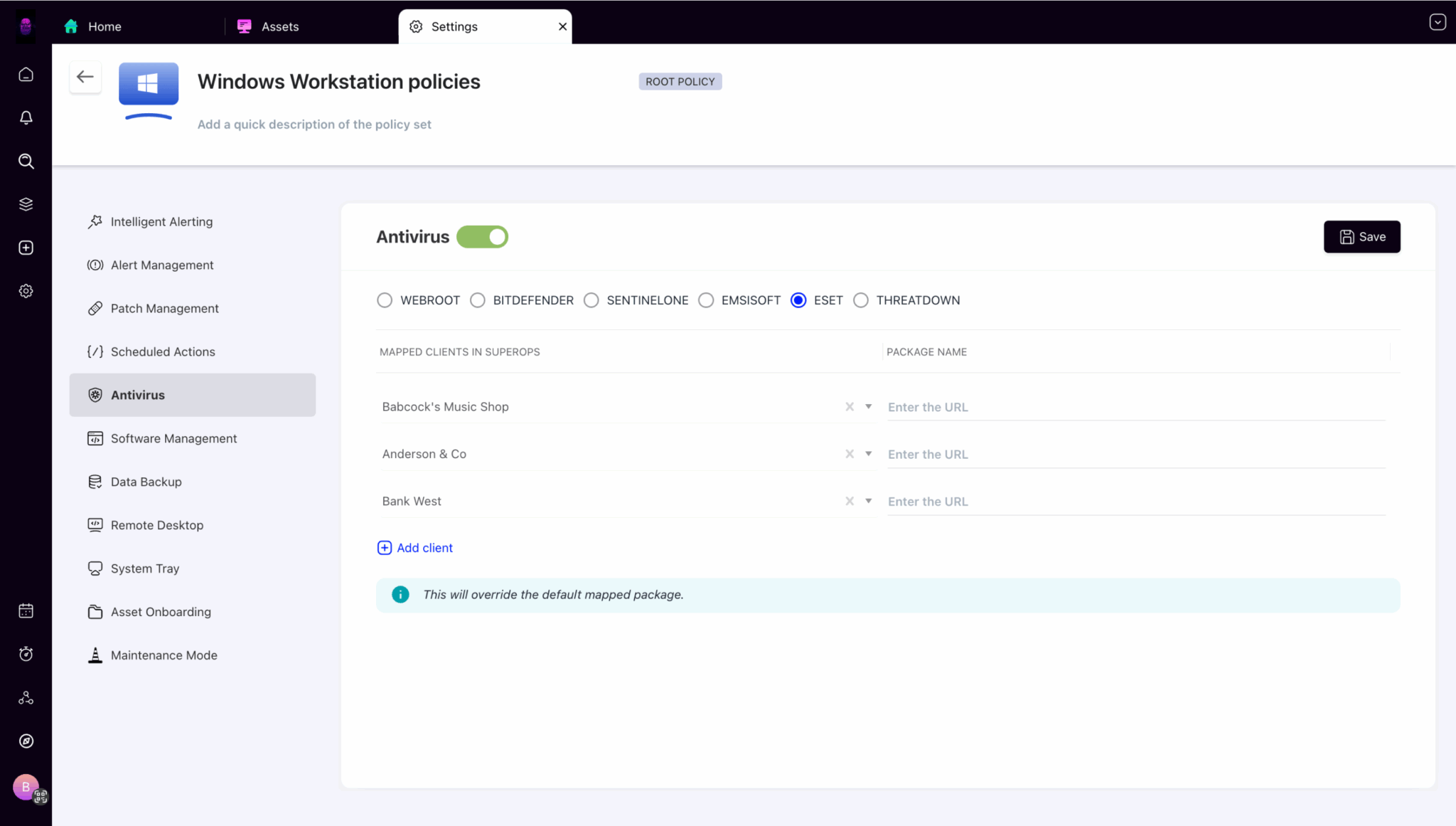 Installez et déployez un antivirus pour tous les actifs de vos clients en quelques minutes.