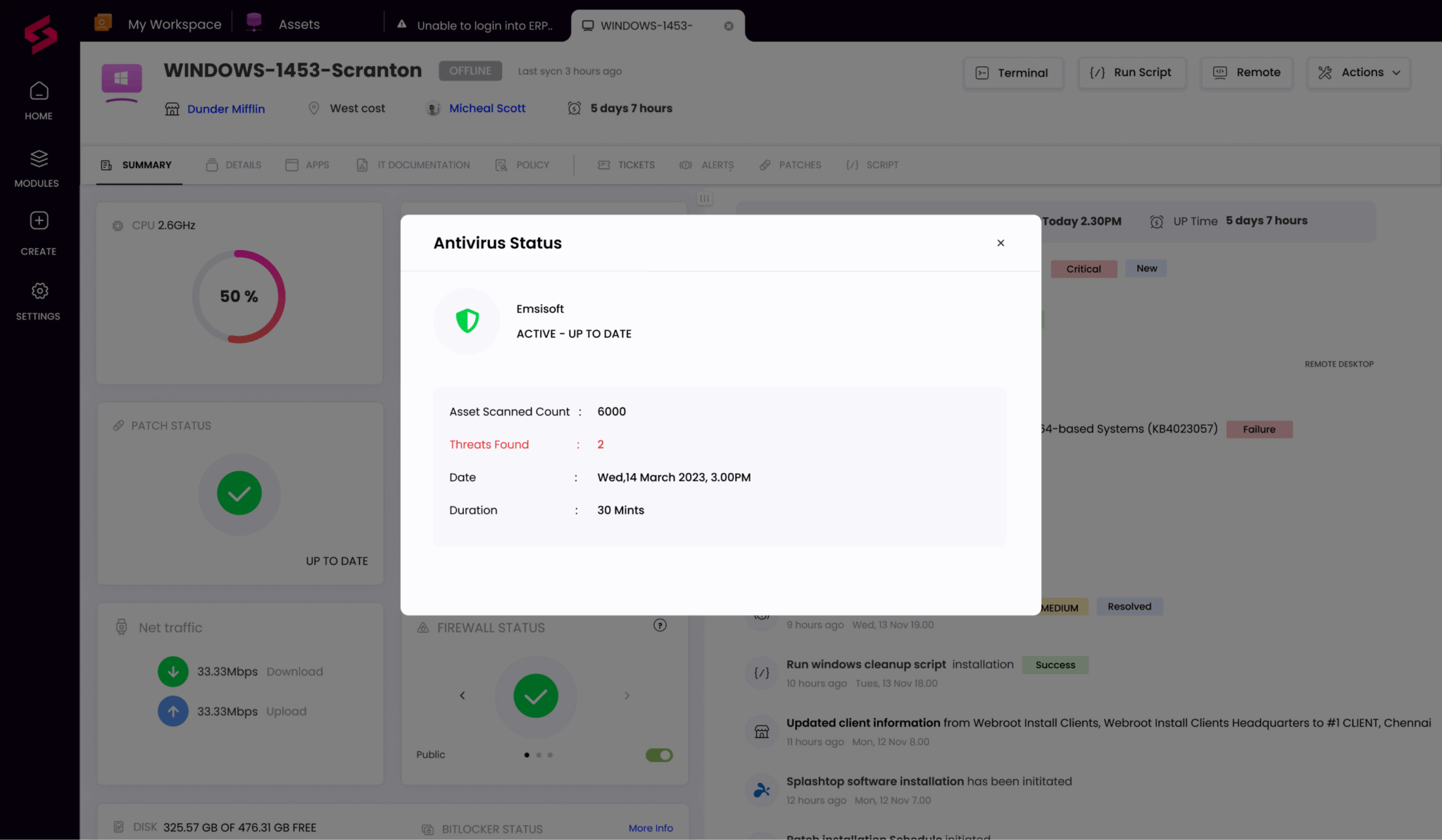 Rationalisez vos flux de travail de sécurité en détectant les problèmes de sécurité, directement dans SuperOps.